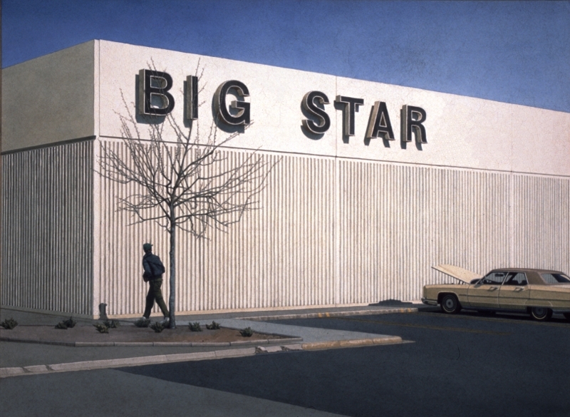 Sometimes the title is in the painting, but hidden. The Sleepy Time Inn was a motel on the outskirts of Durham NC where you could rent a room for the afternoon. I stayed there once. By the time I painted it the new owners had changed its name to Travel Time Inn. I preferred its first name. The sign retains its original cloud shape and sleepy 'Z'. While I was photographing it from the 'Handy Andy' gas station / convenience store across the road I heard a tornado warning over the car radio hence the big black storm cloud. Ironically when a tornado finally came there was no advance warning. It destroyed K-Mart but left the Travel Time Inn untouched. Perhaps I should have painted K-Mart.